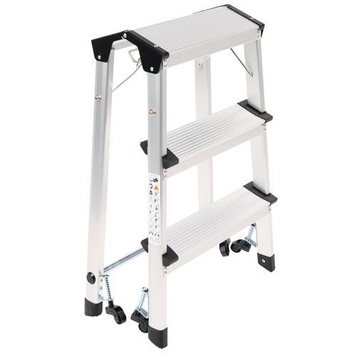 Taitettava yksisuuntainen tikasjakkara alumiinia. Uritetut, luistamattomat askelmat varmistavat käyttömukavuuden. Neljä itsestään sisäänvetäytyvää pyörää helpottavat siirtämistä. Kaikki Manutan-tuotteet ovat tiimiemme testaamia ja hyväksymiä.