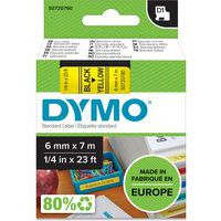 Tarrakirjoitinnauha D1, 6 mm, Tausta, väri: Keltainen, Pituus: 7 m, Teksti, väri: Musta, Leveys: 6 mm