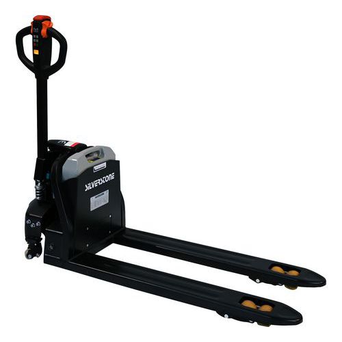 Täyssähköinen haarukkavaunu ESL15L on kompakti ja ammattikäyttöön soveltuva sähköinen nostovaunu, joka on varustettu jousitetuilla tukipyörillä vakauden parantamiseksi.