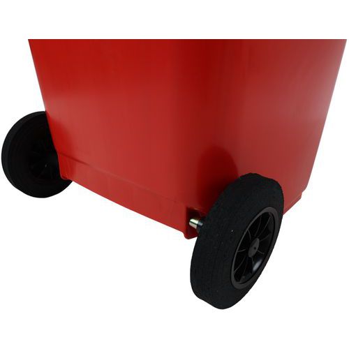 Käytännöllinen ja helposti käsiteltävä jätesäiliö vankkojen kahvojen ja pyörien ansiosta. Saatavilla useita värejä jätteiden lajittelun ja sisällön tunnistamisen helpottamiseksi. Kiinteät pyörät, halkaisija 200 mm. Valmistettu korkealaatuisesta korkeatiheyspolyeteenistä. UV-kestävä ja iskunkestävä. Säiliö, joka kestää kemikaaleja ja on suojattu haitallisilta hyönteisiltä. Ei ime nesteitä, pestävä ja steriloitava.