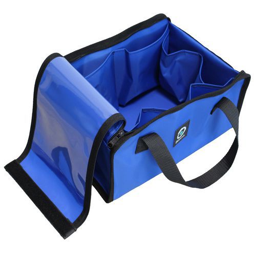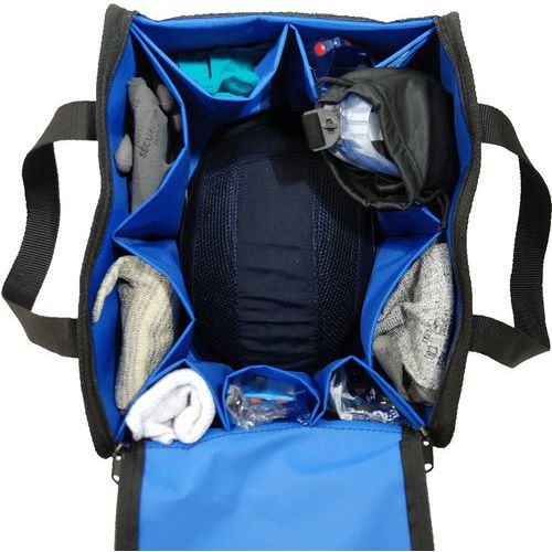 | Tavaranimike | Teollisuuslaukku suojavarusteiden säilytykseen, Väri: Sininen Musta, Kokonaisleveys: 330 mm |