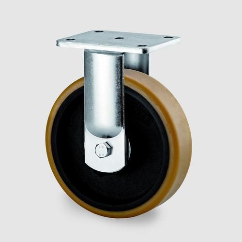 - Teollisuuspyörä raskaille kuormille, erittäin kestävä ripustus. Tarkkuuskuulalaakeroitu pyörä valuraudasta, ja juoksupinta polyuretaania.
