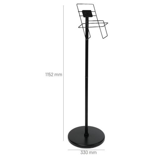 | Tavaranimike | Teräksinen esiteteline, jossa pohja, A4, musta, Hyllytasojen lkm: 1, Väri: Musta, Kokonaisleveys: 330 mm |