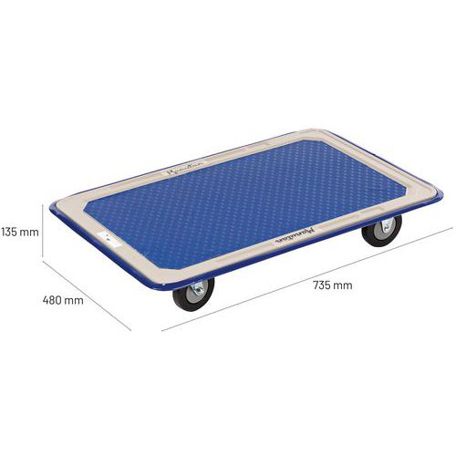 Iskuja vaimentava lista reunoissa. Vankka rakenne. Rullataso, mukana liukuestematto Iskuja vaimentava lista reunoissa. Kapasiteetti (kg) : 300 Takuu (vuosia) : 10 vuotta