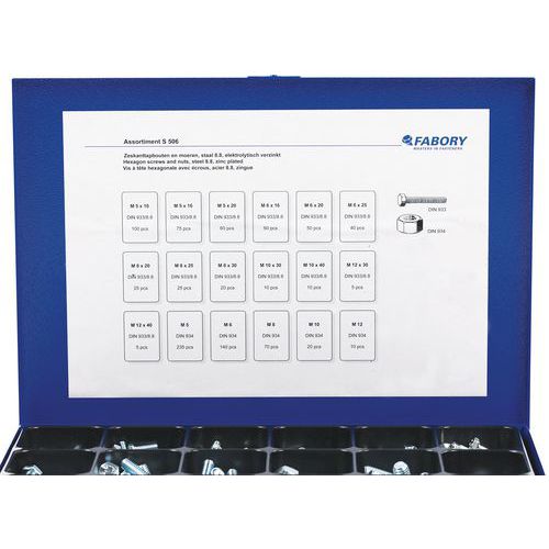 | Tavaranimike | Teräskotelo, jossa kuusikulmaisia pultteja kokokierteeseen kuusiomuttereilla – 950 kpl, Materiaali: Teräs |