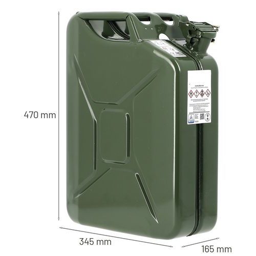 | Tavaranimike | Teräspeltikanisteri, Tilavuus: 20 L, Väri: Vihreä, Tyyppi: Bensiini, Pituus: 345 mm, Leveys: 165 mm |