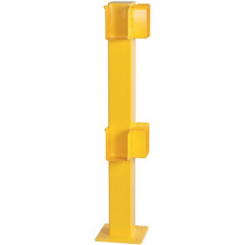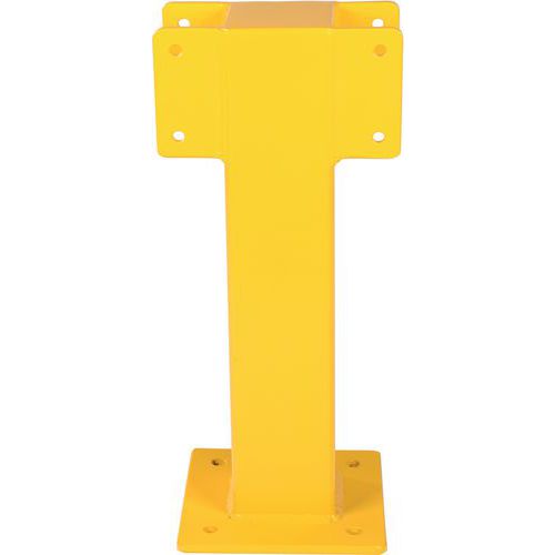 Terästolppa turvaesteeksi, täysin mukautuva tiloihin. Keltainen väri hyvän näkyvyyden takaamiseksi. Taattu vakaus, koska se on kiinnitetty maahan peltilevyllä. Valmistettu galvanoidusta teräksestä sisäkäyttöön. TÜV-sertifikaatti. Helppo asennus.