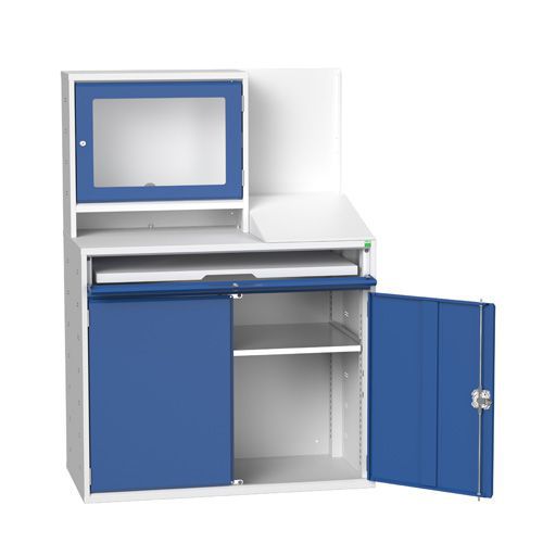 | Tavaranimike | Tietokonekaappi Workstation, Jalusta, väri: Vaaleanharmaa, Ovi, väri: Sininen, Leveys: 1050 mm |