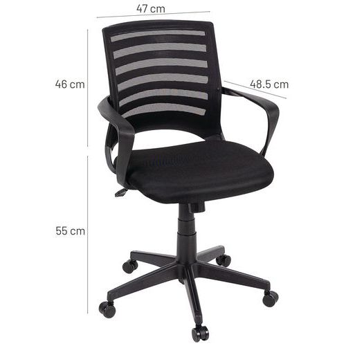 | Tavaranimike | Toimistotuoli Ella, Käsinoja: kyllä, Jalkatyyppi: Pyörät, Istuin, materiaali: Kangas, Niskatuki: ei |