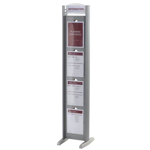 | Tavaranimike | Totem kiinteä esittelyteline- kaksipuolinen- 8 A4-osiota, Lkm, lokerot/pylväs: 8, Väri: Harmaa, Kehys |