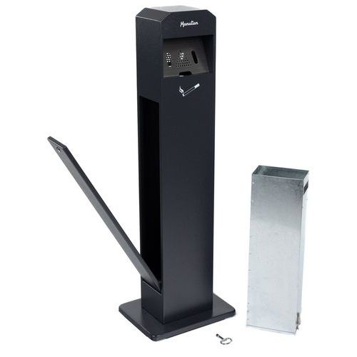 Tuhkakuppi, jossa on sisäänrakennettu sammutin ja painotettu pohja. UV-suojattu ja ruosteenkestävä pinnoite, säänkestävä. Pinta ruostumatonta terästä savukkeiden sammuttamiseen. Helppo huoltaa: sisäsäiliö voidaan poistaa sivulta tyhjennystä varten. Lukolla varustettu tuhkakuppi. Kaikki Manutan-tuotteet ovat tiimiemme testaamia ja hyväksymiä.