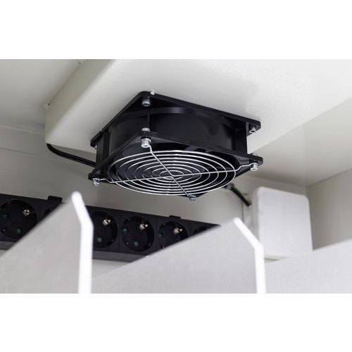 Lämpökehityksen hallitsemiseksi kaapeissa on sisäänrakennettu jäähdytystuuletin.