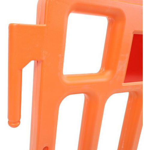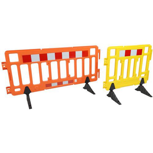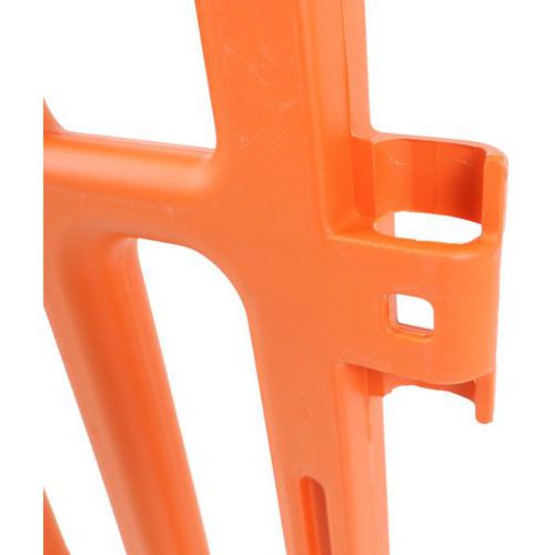 Helppo kuljettaa muovinen suojakatto. Sopii kaikkeen kaupunkikäyttöön. Siinä on heijastavat nauhat, vain toisella puolella paremman näkyvyyden takaamiseksi. Nopea ja helppo liitäntä koukkujen ansiosta. Polyeteenimateriaali tekee esteestä kestävän kaikkia sääolosuhteita. Este ilman hapettumista, äänetön asennettuna. Erittäin vakaat kumijalat. Takuu (vuosia) : 10 vuotta
