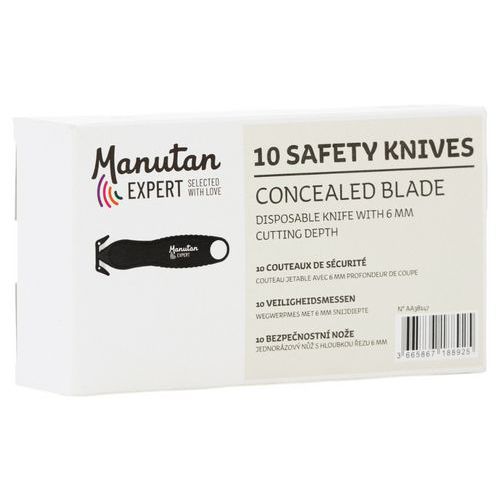 | Tavaranimike | Turvaveitsi suojatulla terällä, Sisäänvedettävä terä: ei, Väri: Musta, Keittiöön: ei, Leikkuusyvyys: 5 mm |