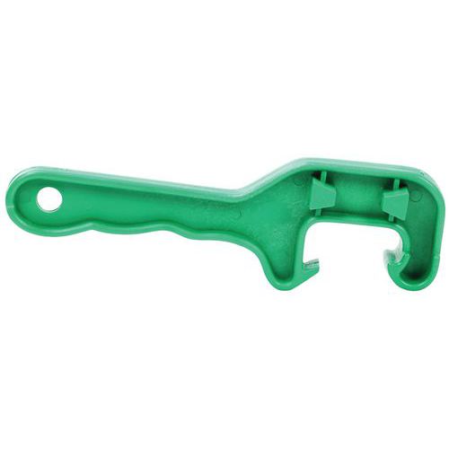 Tynnyriavain 2 tuuman ja 3/4 tuuman tulppareiällisten tynnyrien avaamiseen ja sulkemiseen.