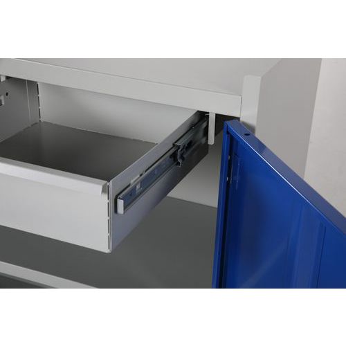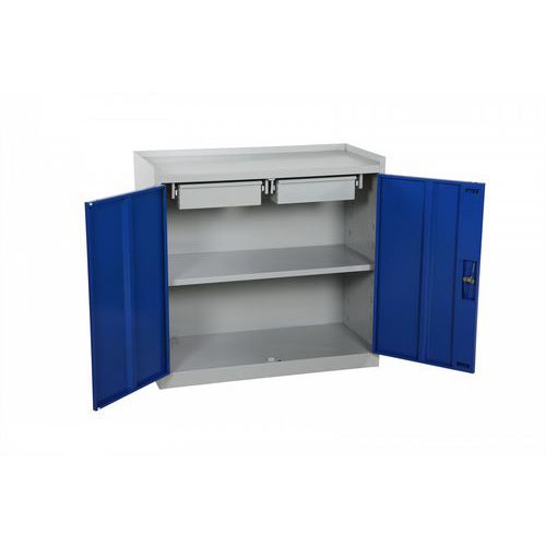 - Tämä työkaappi sisältää lukittavan oven työkalujesi ja tarvikkeidesi turvalliseen säilyttämiseen.