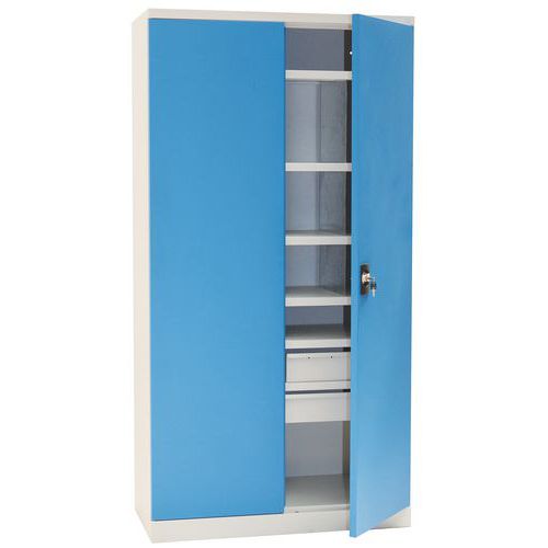 | Tavaranimike | Työkalukaappi SF1, Maks kuormitus: 450 kg, Materiaali: Teräs, Kokonaiskorkeus: 1950 mm, Lkm, laatikot: 3 |