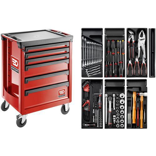 | Tavaranimike | Työkalukärry Roll 6 laatikkoa, työkalusarja V5, Maks kuormitus: 900 kg, Maks paino/laatikko: 30 kg |