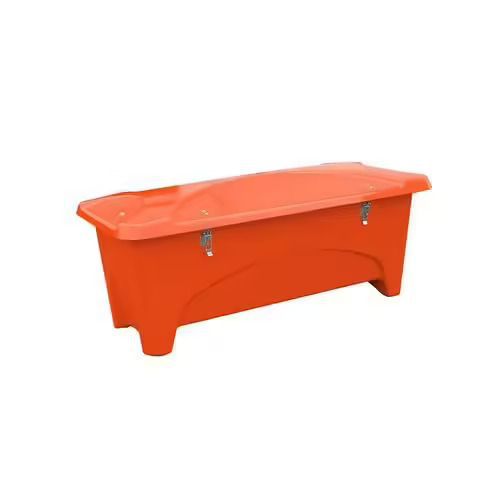 - Kettinkillä varustettu kannen pysäytin sisältyy, ja laatikko on saatavilla väreissä sammaleenvihreä, sininen, keltainen, oranssi, musta ja harmaa.