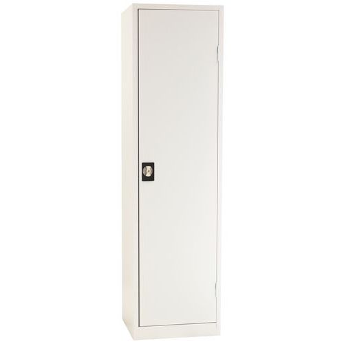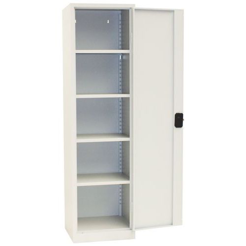 - Hitsatusta teräksestä valmistettu kaappi, jossa saranoidut ovet. Hyllyjen korkeutta voidaan säätää helposti 36 mm:n välein. Kaappi toimitetaan osina.