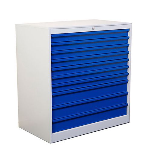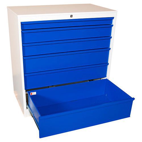 - Laatikosto on varustettu kaatumissuojalla, joka sallii vain yhden laatikon avaamisen kerrallaan.