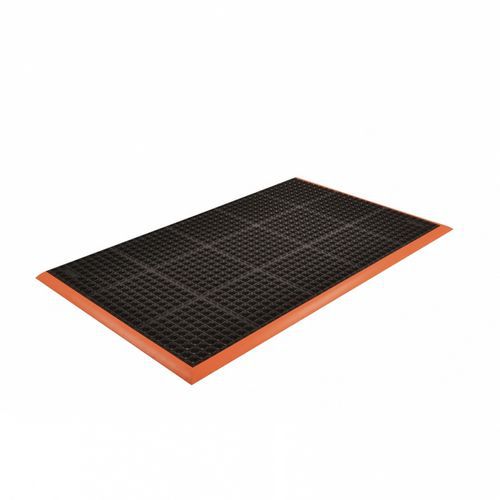 Mainitaan ensimmäisenä. Ehkäisee väsymistä. Asetetaan työaseman eteen viistetyin reunoin. Liukuesteluokka R10, täyttää DIN 51130 -standardin vaatimukset.