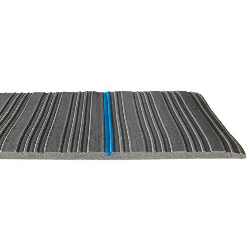 Klassinen vinyylistä valmistettu työpistematto, tiheä rakenne suljetuin kennoin ja ribbikuvioinen pintakerros, joka ehkäisee liukastumista tehokkaasti.