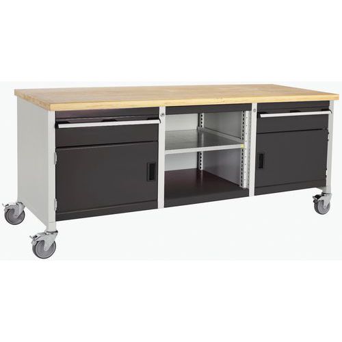 Erittäin tukeva rakenne helpottaa lattian puhdistusta. Joitakin malleja voidaan käyttää istuen (polvietäisyydellä). Erittäin kestävät integroidut laatikostot. Kuormitus laatikkoa kohden: 75 kg, laatikot voidaan avata 100 %. Monobloc-työpöydät, joissa on 125 mm:n halkaisijan pyörät. Enimmäiskuormitus: 300 kg.