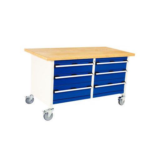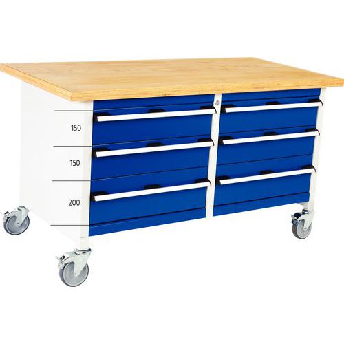| Tavaranimike | Työpöytä siirrettävä monoblokki laatikoilla, Kokonaiskorkeus: 840 mm, Lkm, laatikot: 6 |
