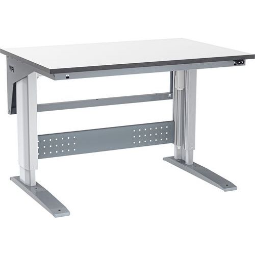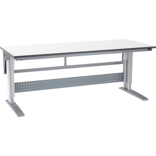 Moottoroitu työpöytä W300, jossa on laminaattipöytälevy – kestää jopa 300 kg kuormituksen ja sopii erinomaisesti teollisuus- ja logistiikkatyöhön.