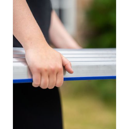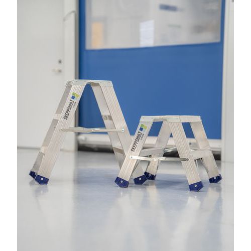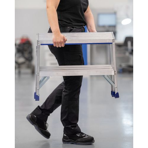 - Suunniteltu käyttöön – vahvat liukuesteet ja vahvistetut askelmat takaavat, että pukki seisoo tukevasti alustalla ja pidentää sen käyttöikää.