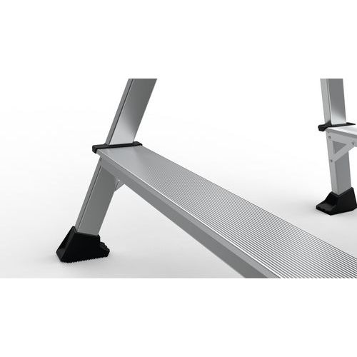 - Varustettu 92 mm syvillä askelmilla ja erityisen suurilla jaloilla turvalliseen sijoitteluun, myös teräsritilöillä.