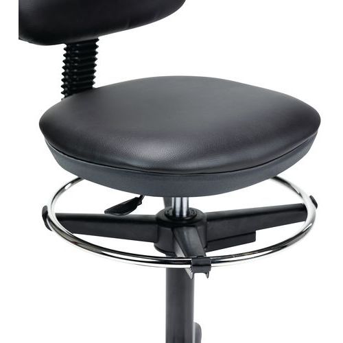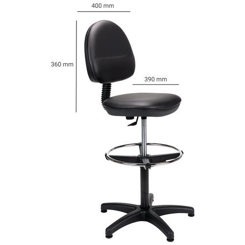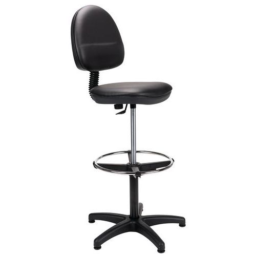 | Tavaranimike | Työtuoli korkea, Käsinoja: ei, Pohjatyyppi: 5 jalkaa, Istuin, materiaali: Vinyyli, Selkänoja: kyllä |