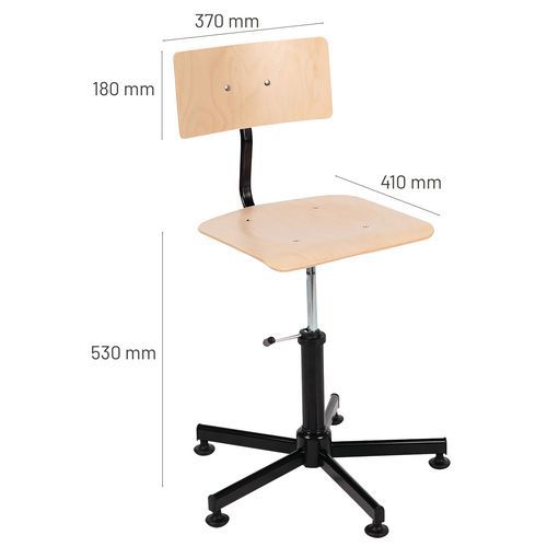 | Tavaranimike | Työtuoli puu, Käsinoja: ei, Pohjatyyppi: 5 jalkaa, Istuin, materiaali: Vaneri, Selkänoja: kyllä |