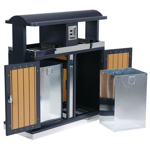 | Tavaranimike | Ulkokäyttöön tarkoitettu lajitteluastia, Tilavuus: 100 L, Aukko: Halkio, Materiaali: Metalli, Jätetynnyri |