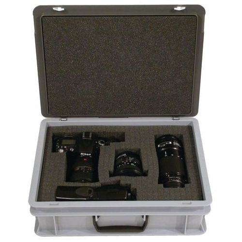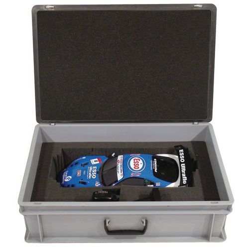 - Käyttövalmis perusmallinen sarja valmiiksi leikattua vaahtokumia nesteiden turvalliseen säilytykseen.