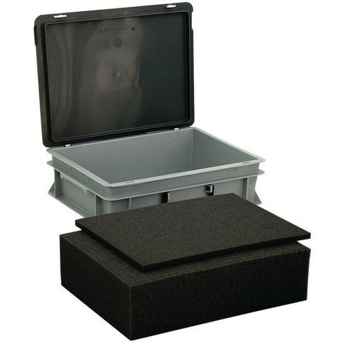- Käyttövalmis perusmallinen sarja valmiiksi leikattua vaahtokumia nesteiden turvalliseen säilytykseen.