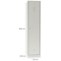 Ovet, jotka on vahvistettu näkymättömillä saranoilla. Optimaalinen avautuminen 180°. Hygieeninen: ilmanvaihto vaatekaapin ovien ylä- ja alaosassa. 1 erotteluseinä puhtaille ja likaisille vaatteille. 1 hylly, 1 tanko ja 2 koukkua per lokero, reiät seinäkiinnitystä varten ja etiketinpidike.