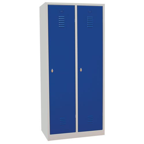 Turvalliset ovet piilosaranoilla. Ovi avautuu 180°. Hygieeninen: ilmanvaihto ovien ylä- ja alaosassa. 1 väliseinä puhtaiden ja likaisten vaatteiden erotteluun. Jokainen osa sisältää hyllyn, vaatetangon ja koukun. Reiät seinäkiinnitystä varten. Etiketinpidin.