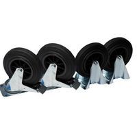 Pyöräsarja lisävarusteena vaunulle - valitse tarvitsemasi pyörät: Kiinteät kumipyörät Ø x L: 200 x 50 mm. Jarrutetut kiinteät kumipyörät Ø x L: 200 x 50 mm. Elastiset pyörät Ø x L: 200 x 50 mm. Ilmakumipyörät Ø x L: 260 x 85 mm.