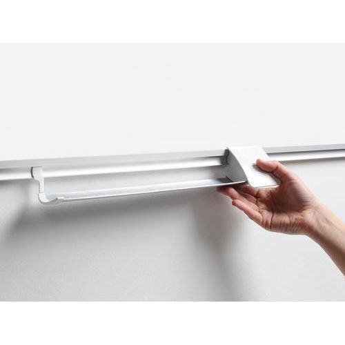 - Vakaa ja edullinen valkotaulu, liukuva kynäteline.
