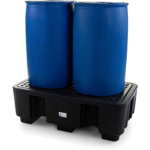 Valuma-allas 2 x 200 L tynnyrin lainmukaiseen vuotosuojaukseen ja säilytykseen.Vuotosuoja-allas HDPE-muovia, kestää kovaa käyttöä ja aggressiivisiakin kemikaaleja. Täyttää kemikaaliturvallisuuslain (390/2005) vaatimukset.BP-sarjan valuma-altaamme ovat poikkeuksellisesti 4-suunnasta alle ajettavat. Sopii öljyjen ja aggressiivistenkin kemikaalien lainmukaiseen säilytykseen 200 L tynnyreissä. Irroitettava ritilätaso helpottaa puhtaanapitoa. Ei ruostu eikä hapetu. Saatavilla katettu versio ulkokäyttöön.