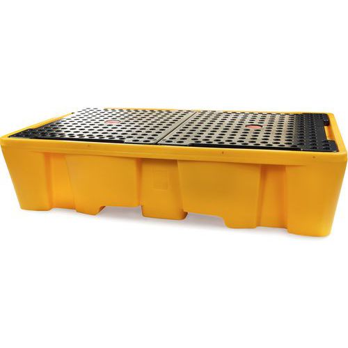 Valuma-allas aggressiivisten kemikaalien varastointiin ja tyhjennykseen. Kestävät ja käyttäjäystävälliset keräysastiat, valmistettu PE-muovista, 100 % kierrätettävä. Helpot säilyttää, liikutella ja puhdistaa. Yhteensopiva lähes kaikkien haarukkatrukkien kanssa, käytä tarvittaessa pidentäjää. Mukana tulevaa tukijalkaa käytettävä aina, kun ritilä on paikoillaan. Irrota IBC-säiliö ja tyhjennä keräysosa ennen siirtoa mahdollisen vuodon sattuessa.