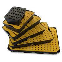 Pienempi valuma-allas turvalliseen pienten säiliöiden varastointiin ja käsittelyyn. Yhteensopiva useimpien kemikaalien kanssa. Alustan pinta on liukastumista estävä turvallisen käytön varmistamiseksi. Irrotettava alusta, jossa on kädensijat helppoa nostamista varten. Tarkastusaukot mahdollistavat nopean nestetason tarkastelun. Altaan pinta on helppo puhdistaa irrotettavan alustan ansiosta. Tuote on testattu DIBt-standardien mukaisesti (vain musta alusta).