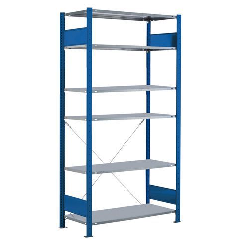 Varastohylly Easy-Fix-Sininen: Perusosa, Maks paino/hyllytaso: 150 kg, Korkeus: 2500 mm, Hyllytasojen lkm: 6