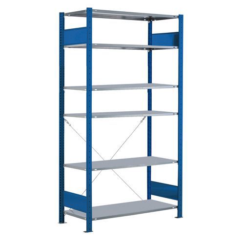 Varastohylly Easy-Fix-Sininen: Perusosa, Maks paino/hyllytaso: 150 kg, Korkeus: 2500 mm, Hyllytasojen lkm: 6