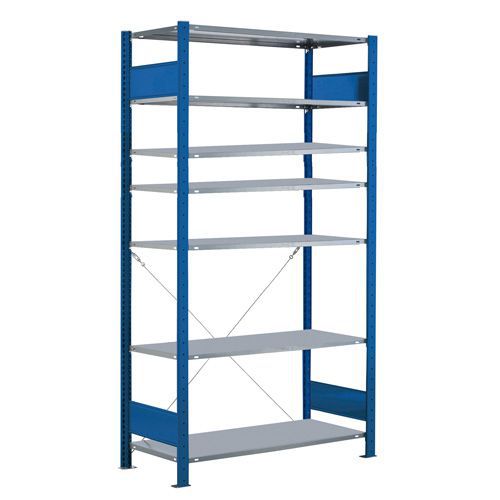 Varastohylly Easy-Fix-Sininen: Perusosa, Maks paino/hyllytaso: 150 kg, Korkeus: 3000 mm, Hyllytasojen lkm: 7