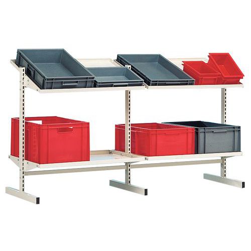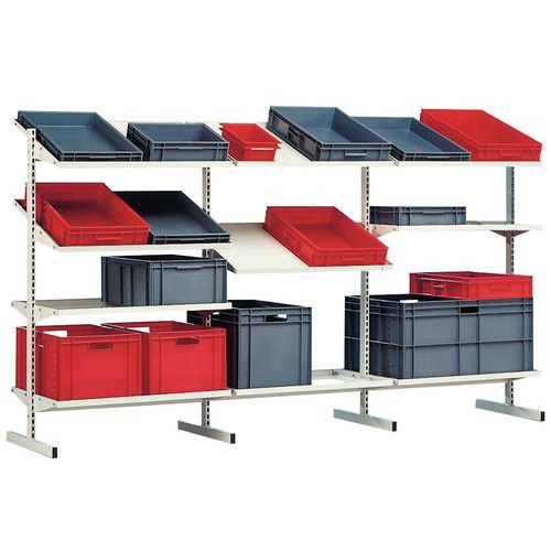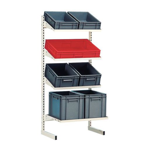 - Kalteva hyllytaso mahdollistaa helpon tarttumisen tavaroihin. Helppo asentaa ja laajentaa. Hyllyjärjestelmä, joka sisältää yksinkertaiset säilytyslaatikot, soveltuu erinomaisesti asetettavaksi seinää vasten. Kiinnitysruuvit sisältyvät toimitukseen. Soveltuu erinomaisesti eurooppalaisen standardin mukaisille laatikoille.