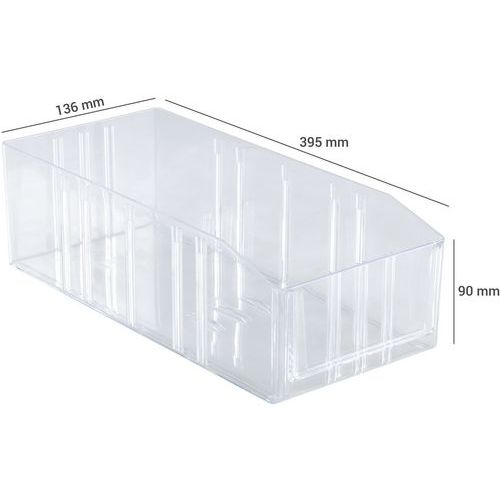 Erittäin tukeva. Lokerolla varustettu keräilylaatikko. Madallettu etusivu auttaa näkemään sisällön paremmin. Sileät seinät ja pohja. Kestää hyvin happoja. Toimitus sisältää etiketit ja etikettisuojat.