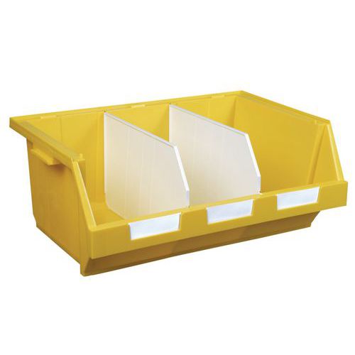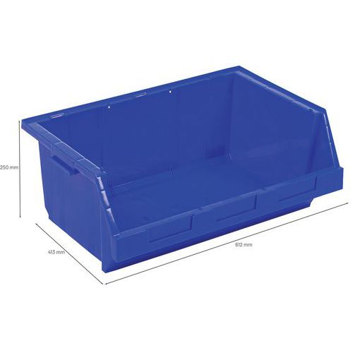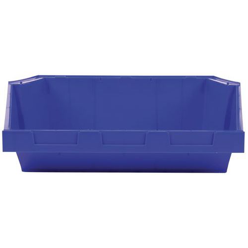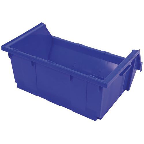Moduulilaatikko, joka voidaan pinota (täynnä ja tyhjänä) muilla samanmallisilla laatikoilla.